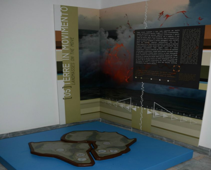 Allestimento tematico interattivo sulla geologia pensato come un laboratorio di “macchine meccaniche”, che guidano il visitatore all’osservazione e alla sperimentazione, in un viaggio ideale dal centro alla superficie della Terra. Il visitatore diventerà “geologo per un giorno” per una escursione alla scoperta dei fenomeni fisici e chimici che hanno formato e modellato l’interno del nostro pianeta e la sua superficie. L’evoluzione geologica, per capire come avvengono i terremoti o nascono le montagne, dove ogni roccia racconta la propria storia, la storia delle Alpi Apuane.
